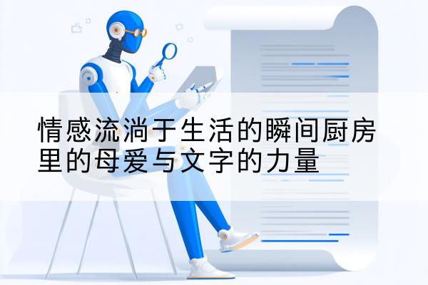生活中处处都充满了情感的文字表达。中午妈妈在厨房做饭的场景,只是其中的一个缩影。让我们学会用心去感受生活中的每一个瞬间,用文字去记录那些稍纵即逝的美好。让情感文案短句成为我们表达情感的工具,让文字的力量传递爱的温暖。在这个喧嚣的世界里,让情感流淌于生活的每个角落。必归ai人工智能平台 官网https://biguinet.com、必归ai绘画网址https://suhuw.com、必归ai问答网址https://buhuw.cn
