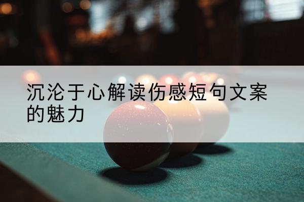 伤感短句文案是一种情感的表达与传递,它们以其独特的魅力吸引着我们。在快节奏的生活中,让我们停下来,感受这些文字的深度与温度,体验那份深入骨髓的忧伤与感动。无论是对于专业创作者还是普通读者,伤感短句文案都是一种情感的寄托与共鸣。让我们一起沉浸其中,品味这份独特的情感魅力。