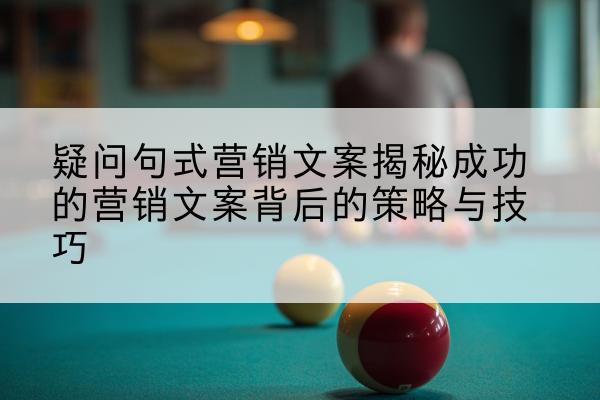 在这个信息爆炸的时代,营销文案的重要性不言而喻。如何撰写一篇引人入胜、深度专业且富有创意的营销文案,吸引用户的注意力并激发他们的购买欲望,成为每一个营销人员都需要掌握的技能。本文将通过解析疑问句式营销文案的方式,为您揭示成功的营销文案背后的策略与技巧。