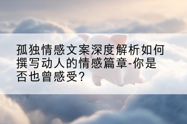 在这个纷繁喧嚣的时代,孤独似乎成了一种常态。我们每个人都会有那么一刻,深陷于孤独的情感中,渴望被理解,被关怀。那么,如何写一篇动人的情感文案,去捕捉这种微妙的情感,让读者产生共鸣呢?你有没有感受过这种情感,又该如何表达?