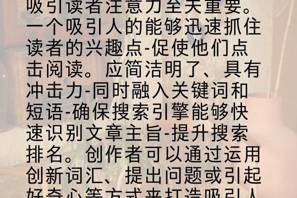 文章的实用价值是吸引读者的重要因素之一。创作者应关注读者的需求,提供具有实用性的信息和建议。例如,针对某一问题提供解决方案或方法,分享实用的经验和技巧等。这样的内容能够迅速吸引读者注意力,提高读者对文章的满意度和点击率。