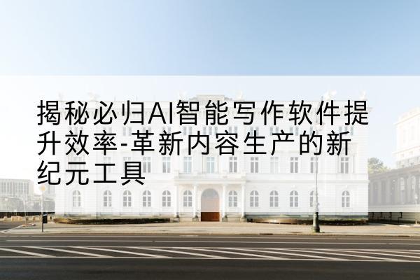 随着人工智能技术的飞速发展,智能写作软件在众多行业领域大放异彩。其中,必归AI智能写作软件以其独特的优势,迅速崭露头角,成为写作领域的革新力量。本文将为您深度剖析必归AI智能写作软件的功能特点,以及其如何助力内容生产,提升用户体验和点击率。