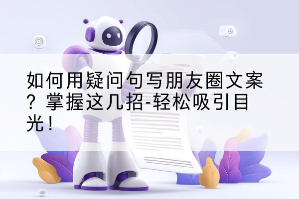 在数字化信息时代,社交媒体已成为我们生活中不可或缺的一部分。朋友圈作为展示自我、交流思想的重要平台,如何撰写高质量的文案,吸引朋友们的关注,成为一个值得探讨的课题。疑问句作为引发读者好奇心和引发讨论的绝佳方式,若巧妙运用在朋友圈文案中,能大大增加文案的吸引力和互动性。那么,如何用疑问句写朋友圈文案呢?下面,就让我们一起探讨这个话题。