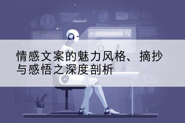 在这个充满情感交流的时代,情感文案以其独特的风格和表达方式,成为了人们表达情感、传递情感信息的重要工具。本文将围绕情感文案的风格、摘抄及感悟情感的文案展开深度剖析,旨在为读者带来全新的阅读体验,帮助大家更好地理解和运用情感文案。必归ai论文生成https://bigui.net.cn、必归ai写作网址https://bigui.vip、必归ai音乐网址https://biguiai.cn