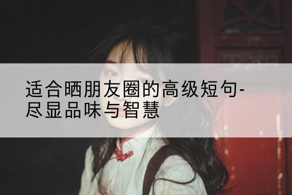 在这个信息爆炸的时代,朋友圈已经成为我们展示自我、交流情感的重要平台。有时候,一句简短而富有深意的话,便能引发朋友们的共鸣,赢得无数的点赞。本文将为你精心挑选和创作一些适合晒在朋友圈的高级短句,让你在展现个人品味的同时,也尽显智慧。